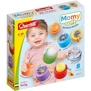 Quercetti Momy Soft Sensory Blocks - Set di 8 Blocchi Sensoriali Morbidi Colorati con Luci e Suoni per Bambini 6-36 Mesi