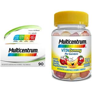 Multicentrum Adulti (90 Compresse) e Vitagummy per Bambini 3+ (30 caramelle gommose), Integratori alimentari di vitamine e minerali