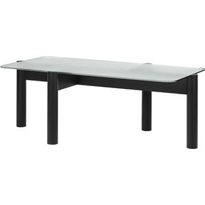 NOO.MA Tavolino Kob - Tavolino da caffè con piano in vetro e gambe in legno massello, design asimmetrico, 105 x 55 x H 40,5 cm