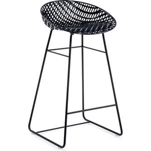 Kartell Smatrik Stool - Sgabello da pranzo in policarbonato e acciaio, Nero, Design Tokujin Yoshioka, Dimensioni: 43x42x80 cm, Altezza seduta: 65 cm