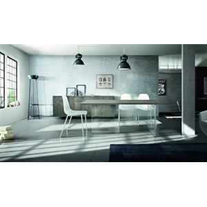 KONTE.DESIGN Tavolo PARIOLI in legno massello rovere nodato con finitura beton e base in vetro, 160x90 cm
