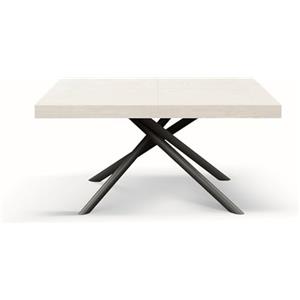 KONTE.DESIGN Tavolo CARRARA Allungabile in Legno Bianco Frassinato e Metallo Verniciato Bianco, 140x90 cm - 220x90 cm