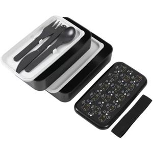 I-TOTAL® Lunch Box Bento Doppio Scomparto con Posate Integrate - Black Cat
