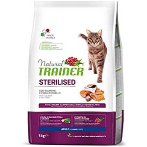 Natural Trainer Cibo Secco per Gatti Adulto Sterilizzato al Salmone - 3 kg, con Fibra di Pisello in Alimenti Cani e Gatti