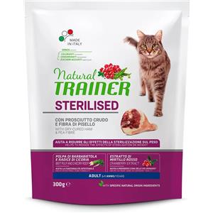 Natural Trainer Cat Adult Sterilised Prosciutto Crudo e Fibra di Pisello - Sacco Da 300 Gr