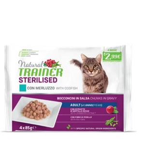 Trainer Natural Gatto Adulto Sterilizzato Merluzzo - Alimento Umido Completo in Bustine da 85g (4x85g)
