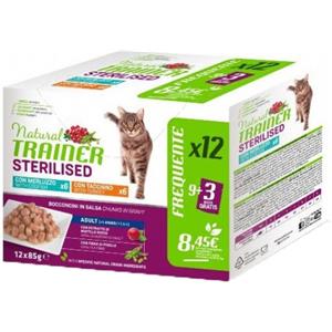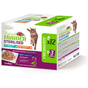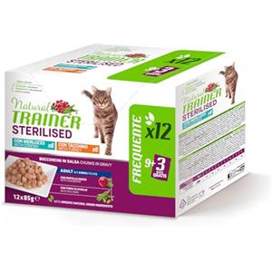 TRAINER Natural Trainer Sterilised Cat Bocconcini Multipack 12 bustine 85 gr (6 Manzo + 6 Tonno) Umido Gatti