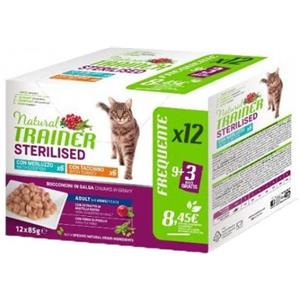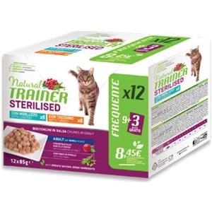 Natural Trainer Cat Sterilised multipack 24 x 85 gr 12 x Tacchino - 12x Merluzzo - 1° ORDINE? fino al 20% di sconto