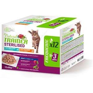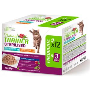 Natural Trainer Cat Sterilised Busta Multipack 12x85G MIX MERLUZZO E TACCHINO