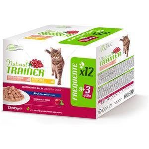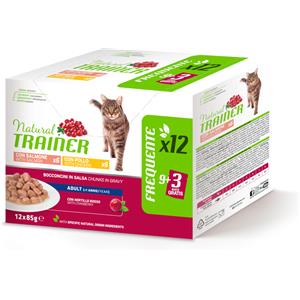 TRAINER Natural Trainer Adult Cat Bocconcini Multipack 12 bustine 85 gr (6 pollo + 6 salmone) Umido Gatti