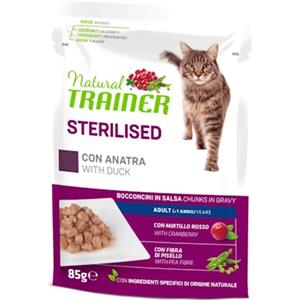 Trainer Natural Gatto Umido Sterilised Adult Anatra 85 g - Alimento Completo con Mirtillo Rosso e Fibra di Pisello