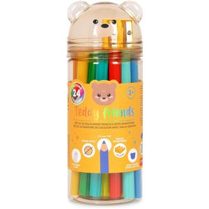 Legami - Set di 24 Matite Colorate Teddy Friends con Temperino, Pastelli Brillanti a Forma di Orsetto, Senza Legno e Contenitore Riutilizzabile