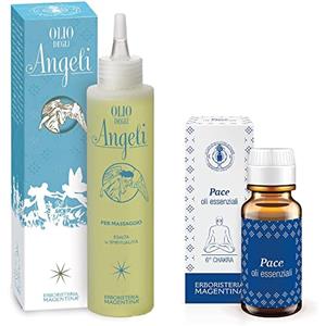 Erboristeria Magentina - Olio Degli Angeli Da Massaggio 150 ml + Olio Essenziale Degli Angeli (Pace) 10 ml - Sesto Chackra - Esalta La Spiritualità, profumo leggero e delicato