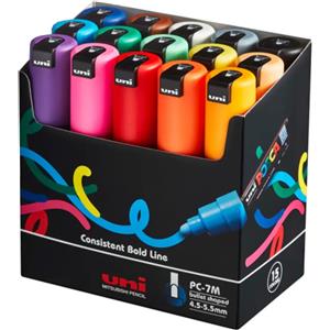 UNI MITSUBISHI PC7M - Astuccio con 15 Marcatori Punta Tonda Large 4,5-5,5mm Colori Assortiti