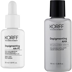 Korff Siero Viso Depigmentante 30ml e Soluzione Esfoliante Illuminante 100ml - Riduce Macchie e Illumina la Pelle