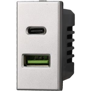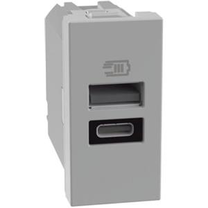 Ettroit Modulo Presa Caricatore USB 2 Porte 3,1A (USB-A USB Type-C) Colore Grigio Compatibile con Bticino Living Light