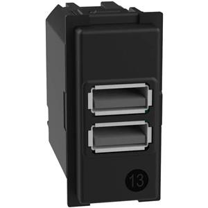 Bticino K4191AA Caricatore USB Doppio con 2 Porte Tipo A, Ricarica Fino a 15W, Installazione Living Now, Nero