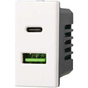 Bticino K4191AC Caricatore USB con 1 Porta Tipo A e 1 Porta Tipo C, Potenza 15W, per Ricarica Simultanea