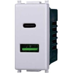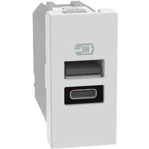 Bticino K4191AC Caricatore USB con 1 Porta Tipo A e 1 Porta Tipo C, Potenza 15W, per Ricarica Simultanea