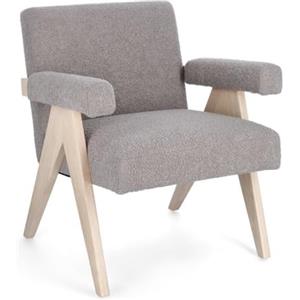 KONTE.DESIGN Poltrona FAIZA in tessuto bouclé tortora con gambe in legno rubberwood - Dimensioni 57,5x80x83 cm