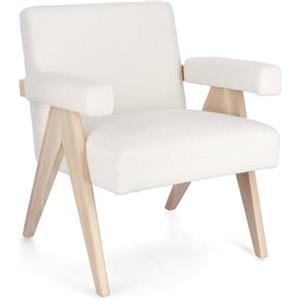 KONTE.DESIGN Poltrona FAIZA in tessuto bouclé avorio con gambe in legno rubberwood - Dimensioni 57,5x80x83 cm