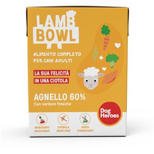 Dog Heroes Lamb Bowl 390g - Alimento Completo Monoproteico per Cani Adulti con 60% di Carne di Agnello e Verdure