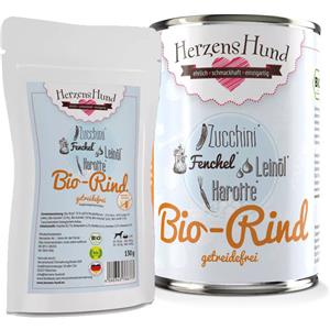 Herzens Hund Cibo Umido Biologico per Cani - Manzo e Zucchine Bio Senza Cereali 400 g