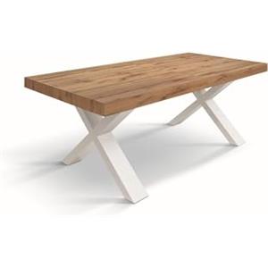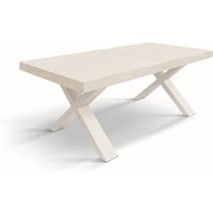 KONTE.DESIGN Tavolo AMALFI Allungabile in Legno Bianco Consumato, Gambe ad X, Dimensioni Chiuso 180x100 cm, Aperto 280x100 cm