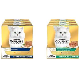 Gourmet Purina Gourmet Gold Mousse per Gatti con Pesce, Fegato, Tacchino e Manzo, 96 Lattine da 85g & Purina Gold Mousse per Gatti con Verdure Umido Gatto Agnello, Anatra, Trota, Merluzzo, 96 Lattine da 85g