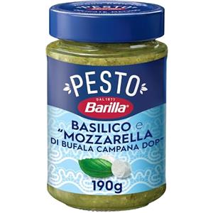 Barilla Pesto Basilico e Mozzarella di Bufala Campana DOP, Sugo Pronto Senza Glutine, Consistenza Vellutata e Gusto Delicato, 190 g
