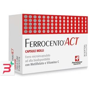 Ferrocento Act - Integratore di Ferro, Acido Folico e Vitamina C - 30 Capsule Molli