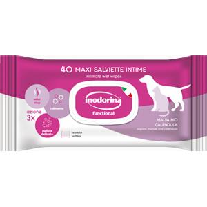Inodorina Salviette Funzionali per Parti Intime - 40 Pezzi con Malva Bio e Calendula, Lenitive e Idratanti per Cani e Gatti