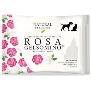 Derbe Natural Derma Pet - Salviette Detergenti Profumate Rosa e Gelsomino - 35 Pz per Cani e Gatti