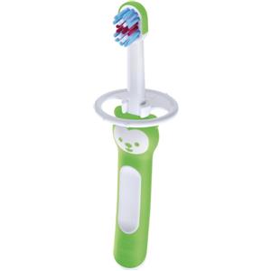 MAM Baby's Brush Box Doppia Neutro - Set di 2 Spazzolini per Bambini 6 Mesi con Setole Extra Morbide e Anello di Sicurezza