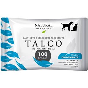 Natural Derma Pet - Salviette Detergenti Profumate al Talco per Cani e Gatti - 100 Pezzi