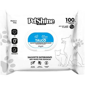 PetShine Salviette Detergenti Talco per Cani e Gatti - 100pz, Azione Deodorante e Detergente