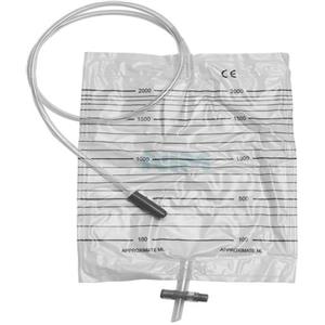 FARMAC-ZABBAN Sacca Raccolta Urina da Letto in PVC Non Sterile 2 Litri con Tubo da 90 cm e Valvola Antireflusso