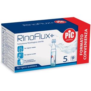 Pic RinoFlux - Soluzione Salina Isotonica 5ml per Detersione Naso e Occhi, 50 Flaconcini Monouso, Adatta a Neonati e Adulti