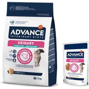 Affinity Advance Veterinary Diets Prezzo speciale! 8 kg Advance Veterinary Diets Crocchette + 12 x 85 g Advance Veterinary Diets - 7,5 kg Urinary Sterilized Low Calorie + 12 x 85 g Cat Urinary