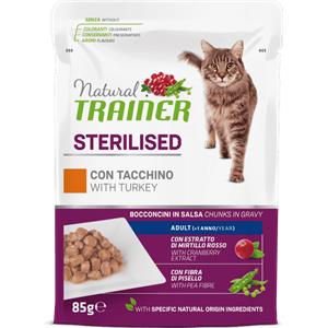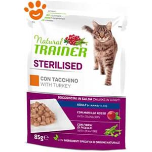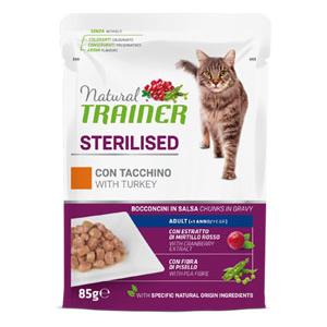 Natural Trainer Adult Sterilised Bocconcini in salsa 85 gr Tacchino - confezione da 12 pezzi - Cibo umido per gatti - 1° ORDINE? fino al 20% di sconto