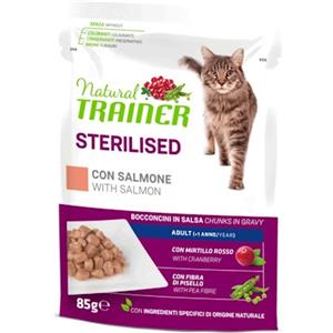 Trainer Natural Gatto Umido Adult Sterilised Salmone 85 g - Cibo Completo con Mirtillo Rosso e Fibra di Pisello