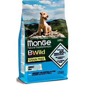 Monge BWild Grain Free Cibo Secco per Cani Adulti Mini con Acciughe, Patate e Piselli - 2,5 Kg