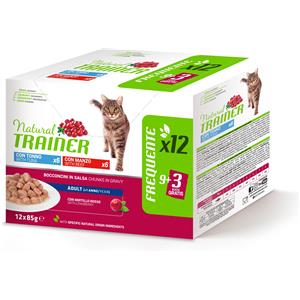 Natural Trainer Cibo Umido per Gatti Adulti Multipack Tonno e Manzo - 12 x 85 g