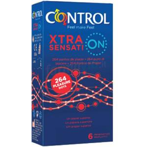 Control Sensual Xtra Dots - Preservativi Stimolanti in Lattice Naturale con 264 Punti in Rilievo - Confezione da 6 Pezzi in Preservativi