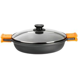 Lagostina Aroma Casseruola Bassa Ø28cm in Alluminio Pressofuso con Coperchio in Vetro, 2 Maniglie, Rivestimento Titanium, Compatibile con Induzione, Gas e Forno
