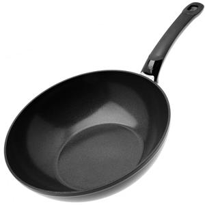 BRA Efficient Wok 28 cm - Padella Antiaderente in Alluminio Pressofuso con Coperchio in Vetro, Adatta per Induzione