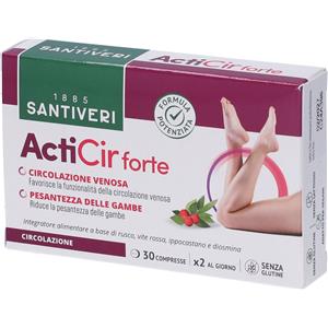 SANTIVERI Acticir Forte - Integratore Alimentare con Rusco, Vite Rossa, Ippocastano e Diosmina per la Circolazione Venosa - 30 Compresse