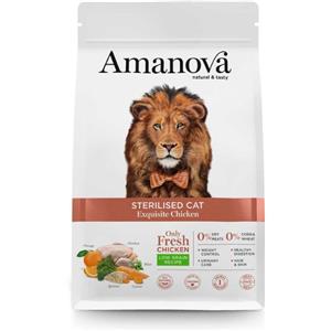 Amanova Cibo Secco Super Premium per Gatti Sterilizzati al Pollo - 1,5 Kg, Monoproteico e Ipoallergenico in Alimenti Cani e Gatti