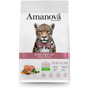 Amanova Cibo Secco Super Premium per Gatti Sterilizzati al Salmone - 1,5 Kg, Ipoallergenico e Monoproteico in Alimenti Cani e Gatti
