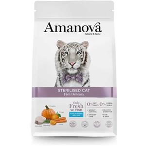 Amanova Cibo Secco Super Premium per Gatti Sterilizzati al Pesce Bianco Fresco - 1,5 Kg, Ipoallergenico e Grain Free in Alimenti Cani e Gatti